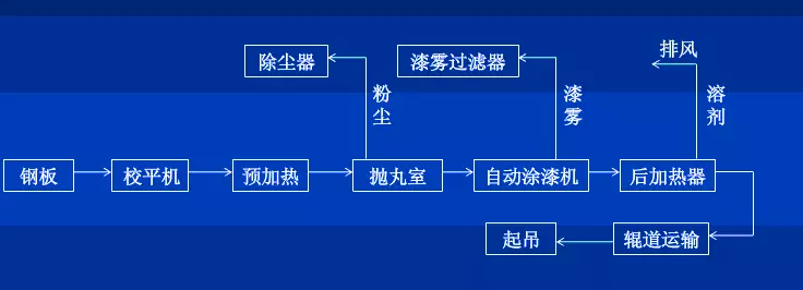 預熱是為了拋丸前將鋼板升溫,除去表面水分、部分油污,使鋼板升溫達到噴漆后的干燥。